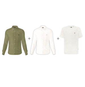 • Combinación poderosa: dos camisas premium + una camiseta esencial.